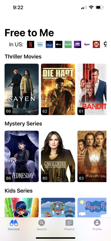 - The Discover screen lists movies and TV series ranked by popularity within each category. These are updated regularly. Pull down to refresh the list of shows.